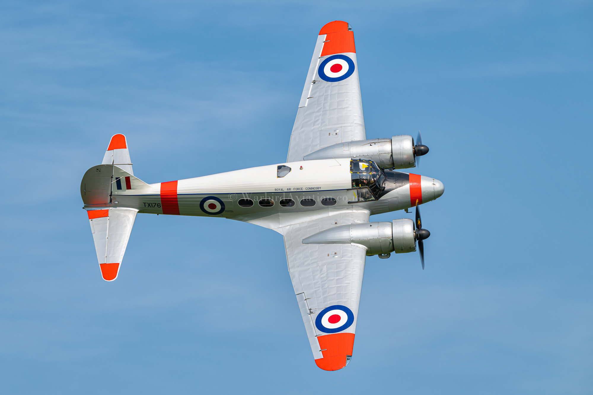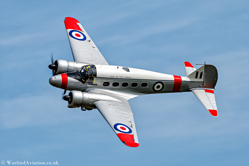 Avro Anson G-AHKX is owned and operated by the Shuttleworth Collection at Old Warden, UK and is painted I the colours of RAF Coningsby Station Flight to represent RAF serial TX176.