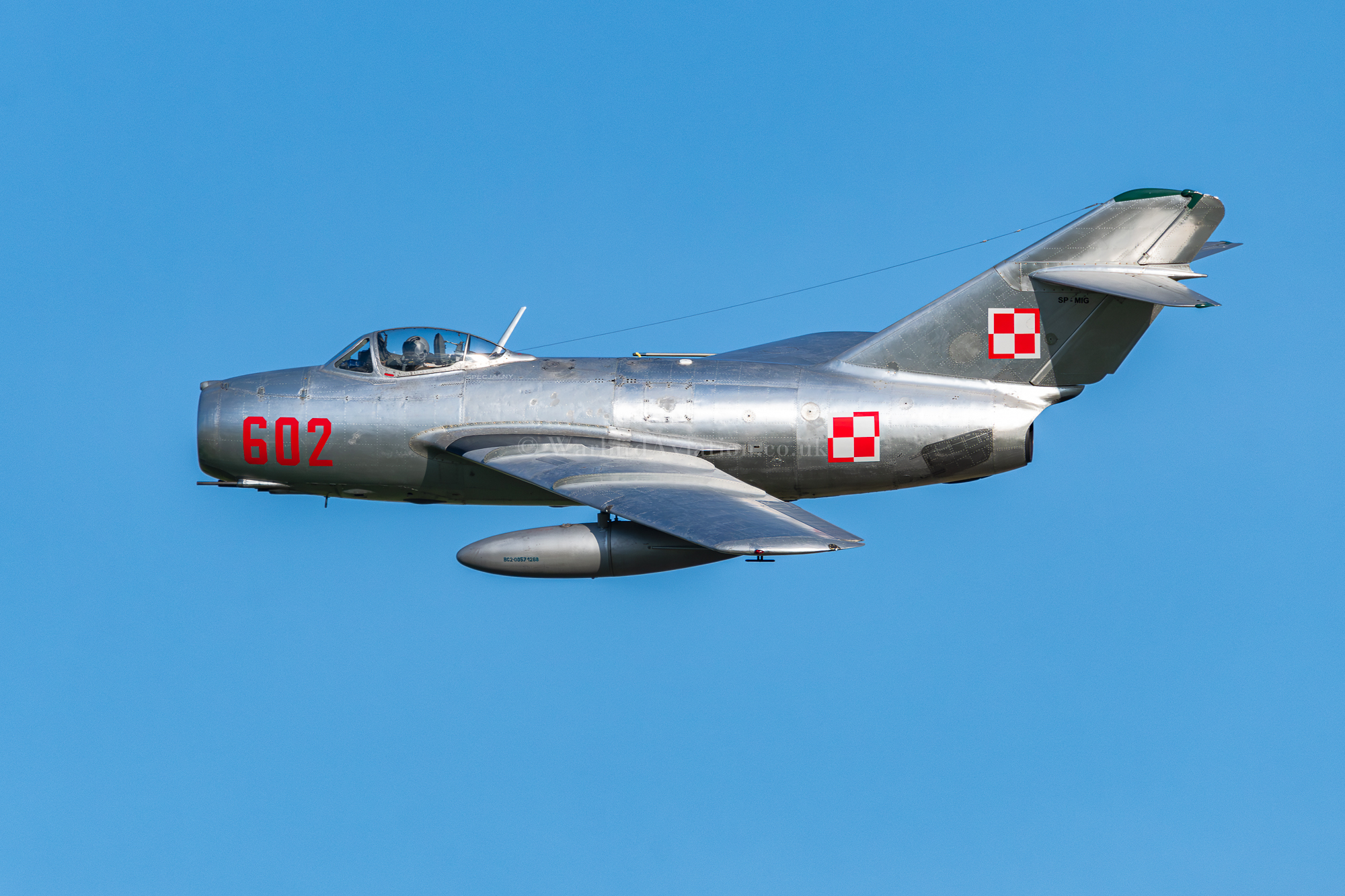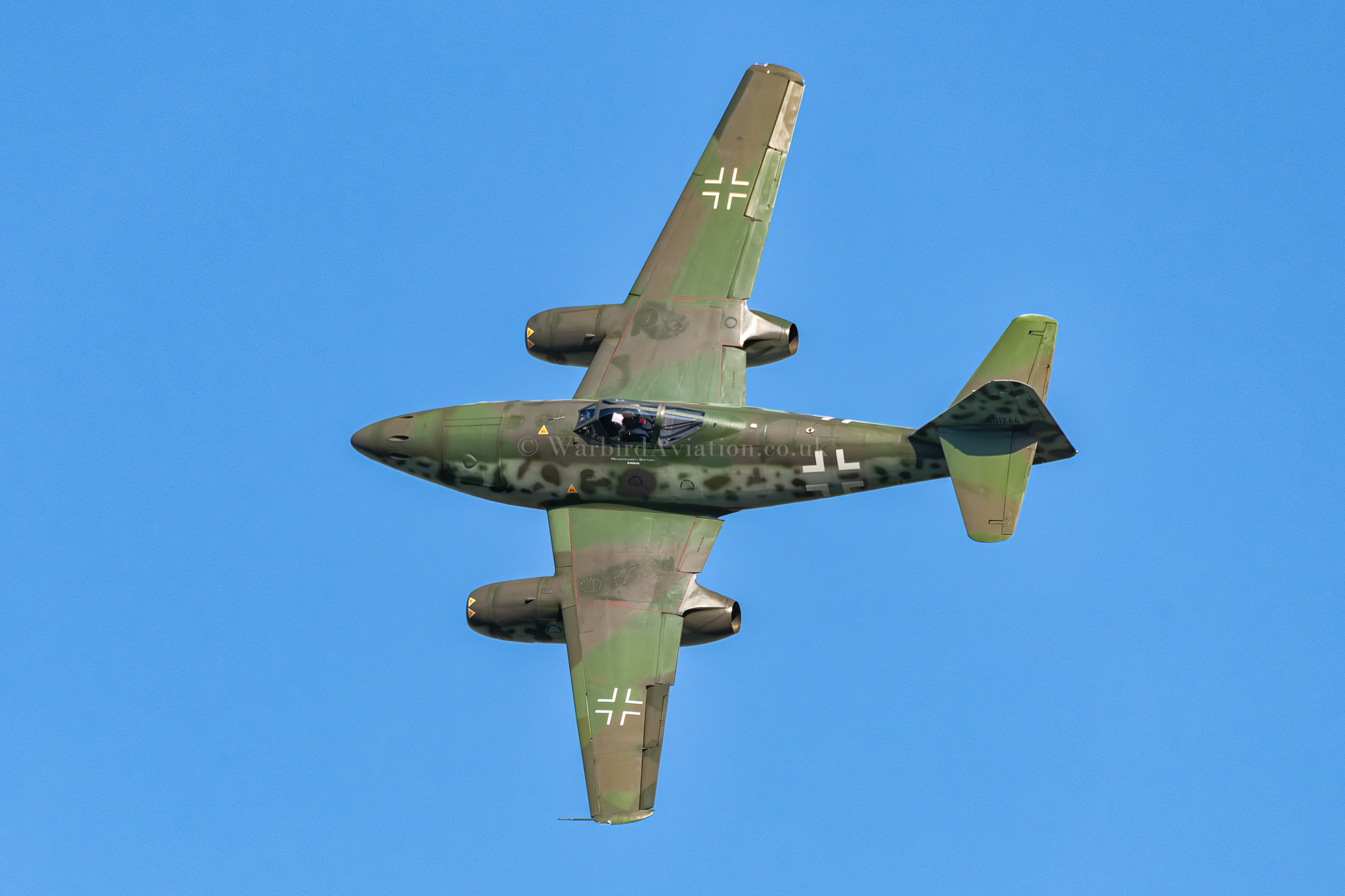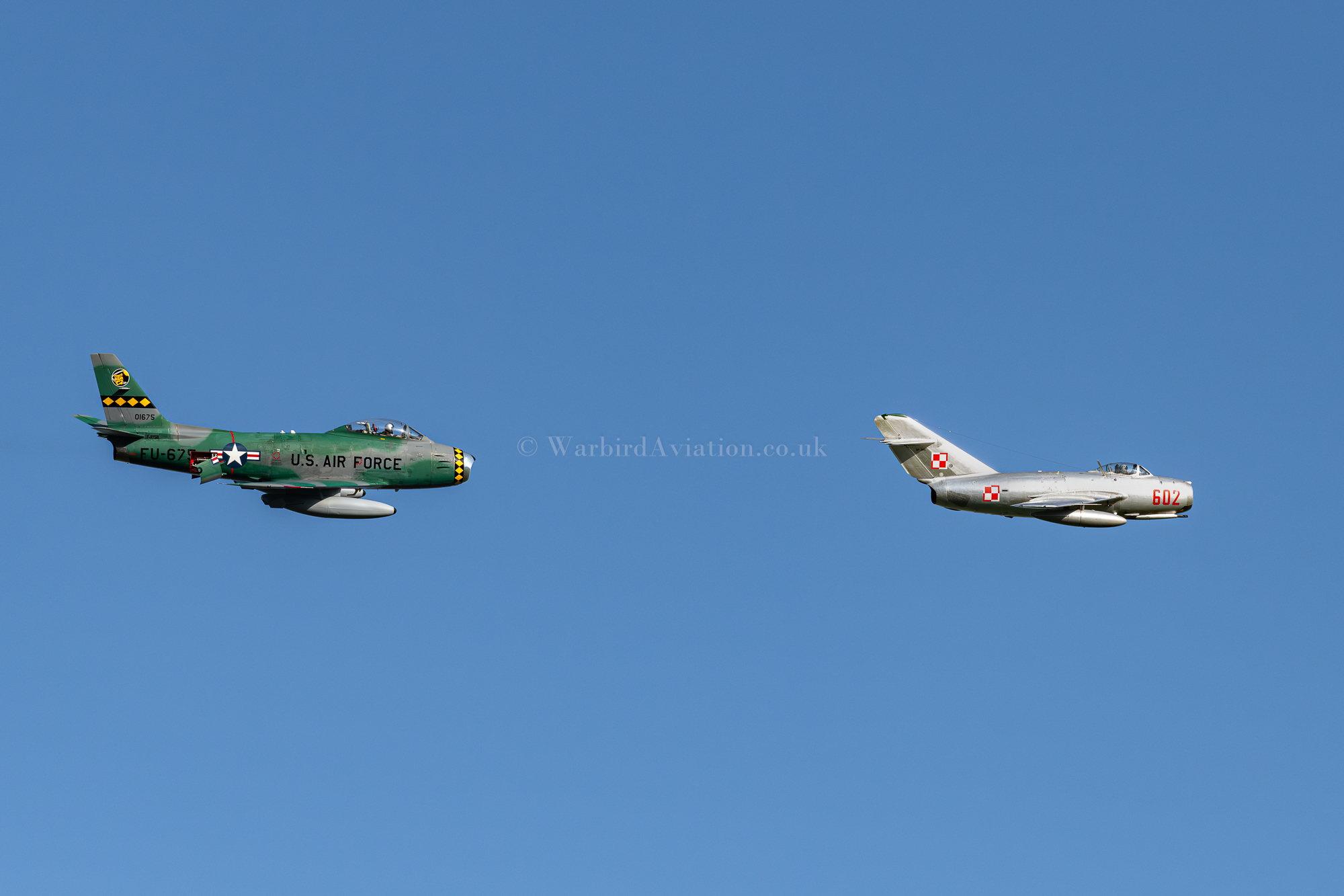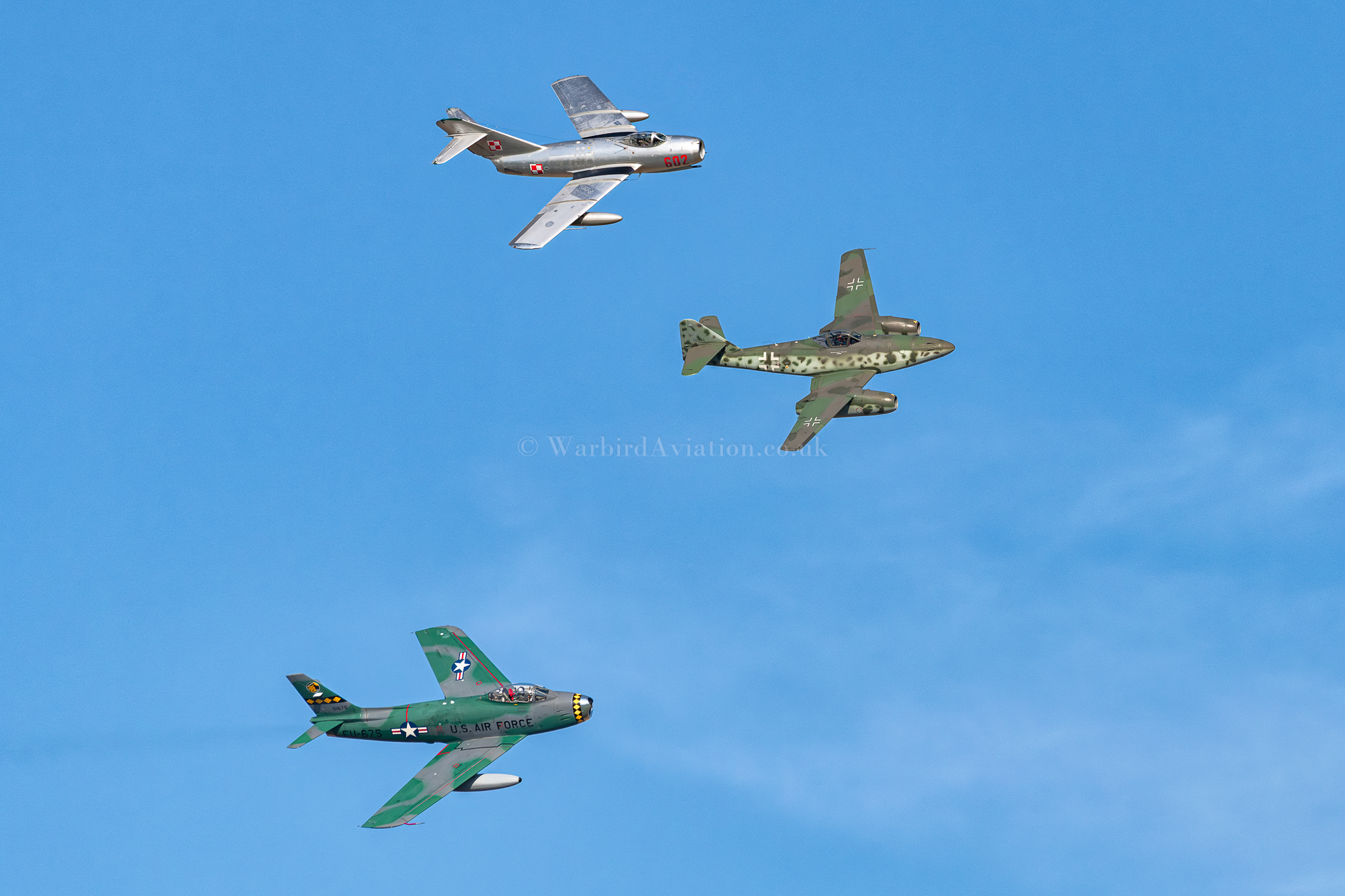 In an aviation first and the main reason we left Kliene Brogal a day early was the stunning prospect of 3 swept wing vintage jets not only on the same flying display but actually flying together in formation. As the light moved well behind us and started to shine nicely, the roar of the F-86 Sabre, Mig-15 and ME262 taking to the air could be heard over our shoulders. The Airbus Heritage Flight/Messerschmitt Flugmuseum replica Me 262 which had put in a stunning display at RIAT in some appealing weather was now in clear blue skies and joined by Mistral Warbirds F-86 Sabre and Fundacja Eskadra’s Polish-built SB Lim-2 (MiG-15UTI), produced by WSK-Mielec in 1952 who put in a number of close for action passes in a wide sweeping arc before the ME262 broke for a solo display with plenty of close top side passes.