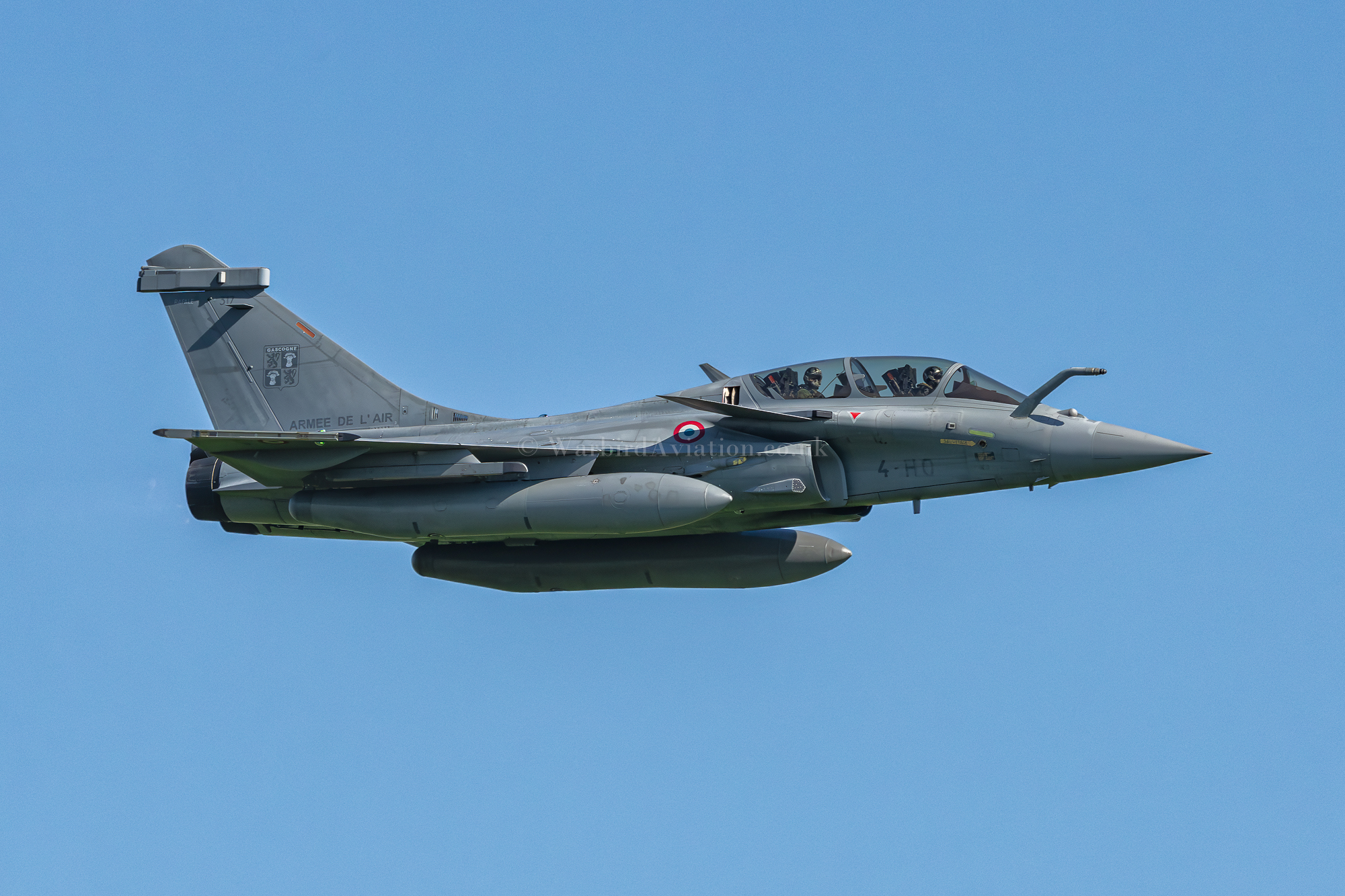 Opening the show at 1:30pm with the sun very much still in front of the crowd line were vintage examples of France’s Naval aviation in the form of the Morane-Saulnier MS.760 Paris and Fouga CM.175 Zéphyr. There were quickly followed by 3 Marine National Rafales from the static park with sweeping passes and a full, probe connected buddy to buddy refueling demo joined by an E-2C Hawkeye from Flottille 4F who put in some impressive top side passes after a formation pass with the Rafales.