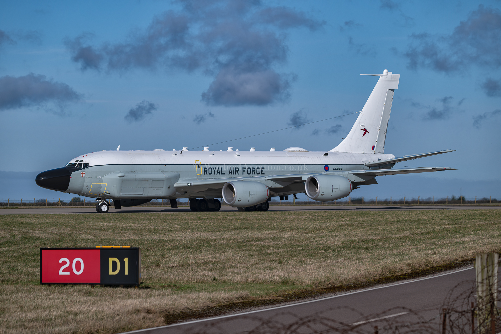 Running slightly earlier this year due to Ramstein Flag, the exercise took place between 24 February and 14 March which also meant that the first week clashed with the local school holidays. I joined the huge crowd at the fence at the 20 end (opposite the Waddington Aircraft Viewing Area or WAVE) on the first day of the exercise. Week 1 featured exercise flying between 10am and 1pm on Tuesday and Thursday only with other missions flown in the afternoon and non exercise days. For the remaining two weeks exercise flying was planned for each day. Whilst we waited for the first launch we were treated to the departure of the resident Boeing RC-135W Rivet Joint ZZ665 on a non related mission as well as a flight from the Protector Unmanned Drone.