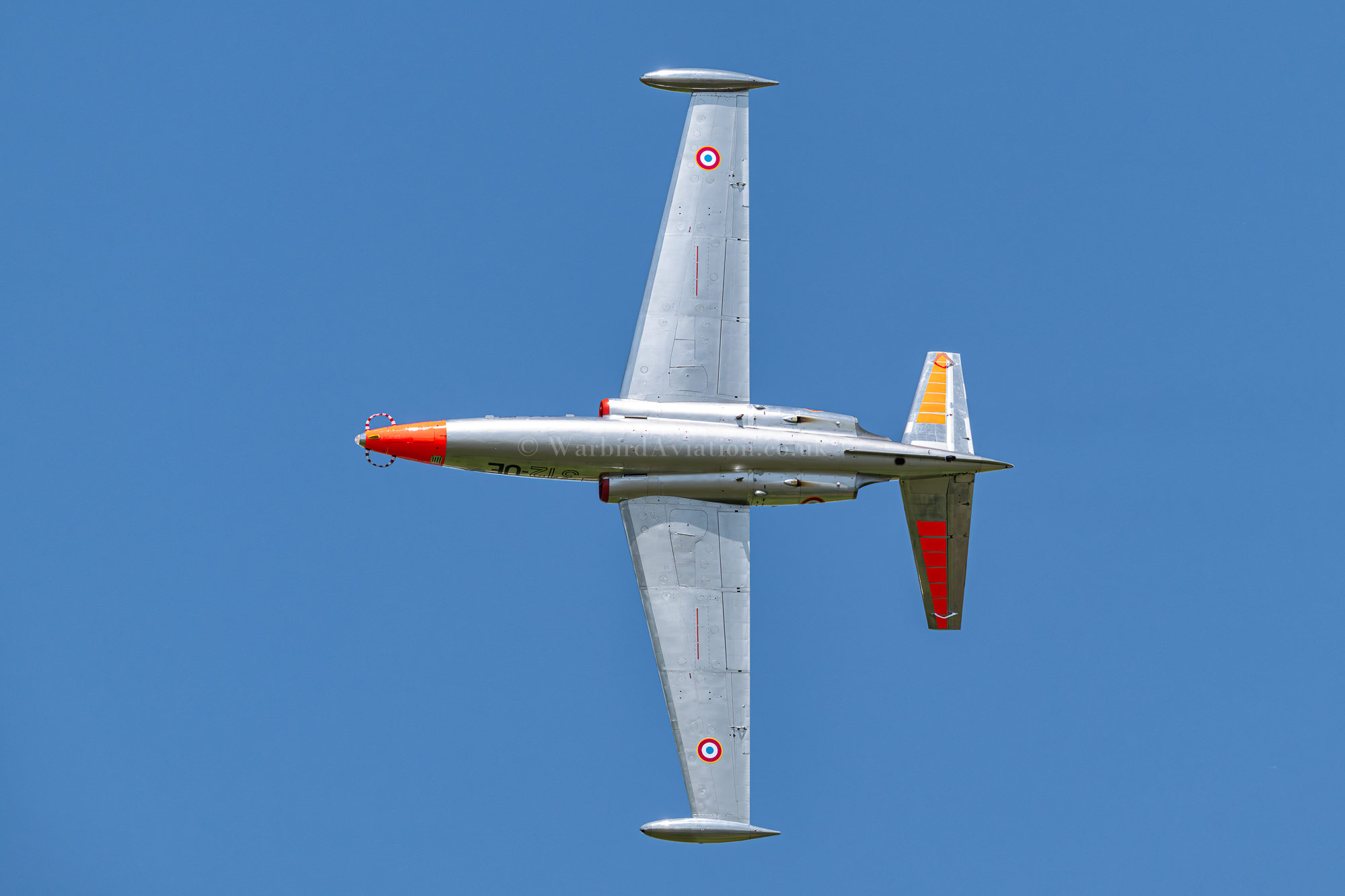 For the vintage jet enthusiast, we had a display by the de Havilland DH100 Vampire operated by Fiocconi Patrice and Sensation Voltige’s Lockheed T-33 (CT-133) Silver Star in a stunning bare metal scheme. Zandotti Sandrine’s Fouga CM-170R Magister flew alongside the North American SNJ-5 Texan F-AZRB in a striking US Navy scheme which really makes it stand out against the blue sky.