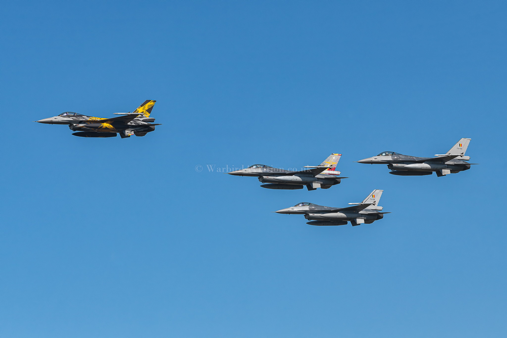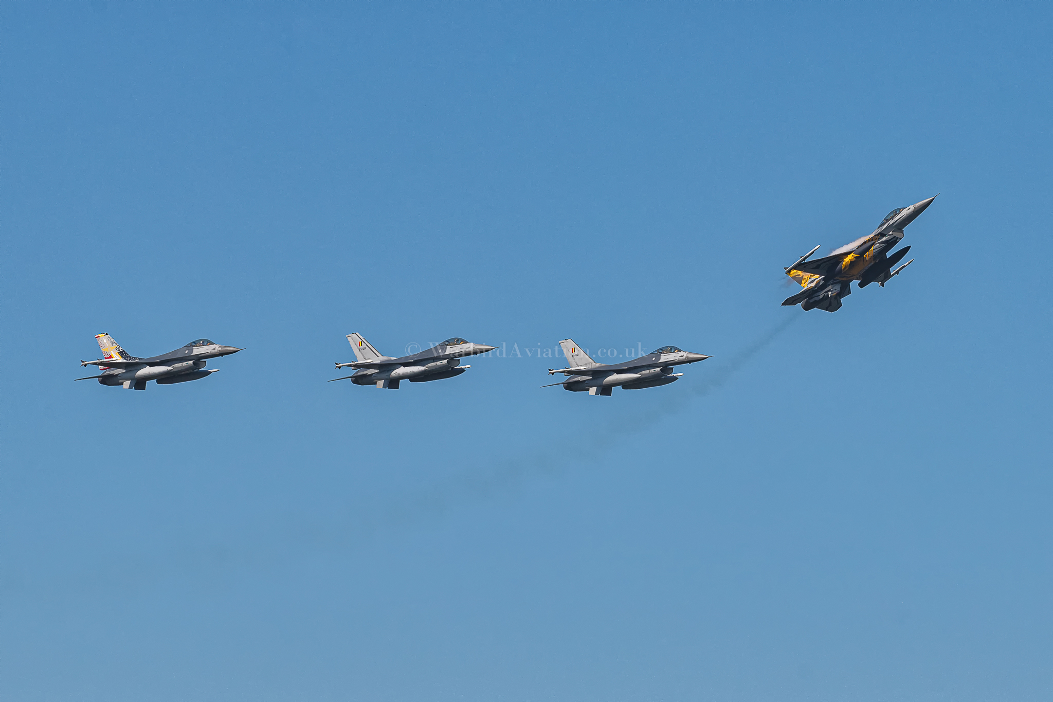 The formation flying was very tight during the ten minute display which on the Friday only included FA-95, the first Belgian Air Force F-16AM which was nearing its 8000 flying hours limit. FA-95 had a special commemorative tail for the occasion and flew as part of this formation before returning to the static display via a water salute from the bases fire tenders as it exited the runway for the final time.