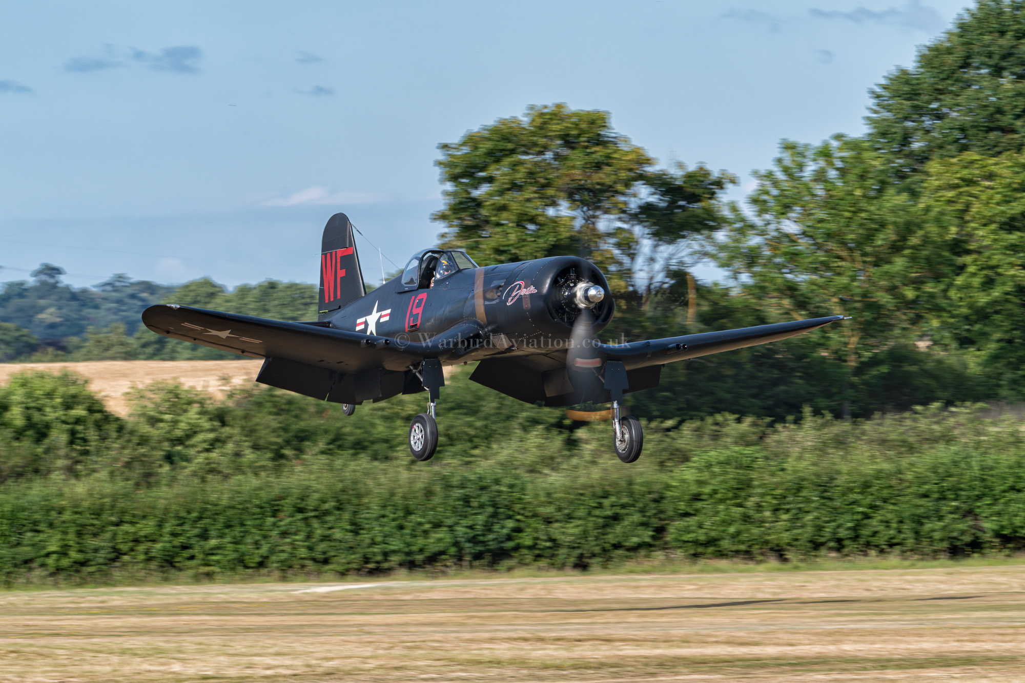 The finale to the daytime display brought together three of the most charismatic machines on the programme: the Shuttleworth Collection’s Supermarine Spitfire Vc, Lilham Aviation’s Supermarine Spitfire IX, and Flying Legends GmbH’s Chance Vought F4U‑5NL Corsair. It was a superbly judged closing sequence, one that made full use of Old Warden’s intimate layout and the late‑afternoon light. The trio opened with a series of tight, sweeping formation passes, the contrasting wing shapes and engine notes creating a wonderfully rich visual and auditory tableau. The Spitfires — elegant, precise, unmistakably British — framed the muscular, broad‑shouldered Corsair perfectly, the three aircraft moving as a cohesive, confident unit across the airfield.