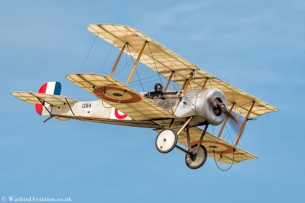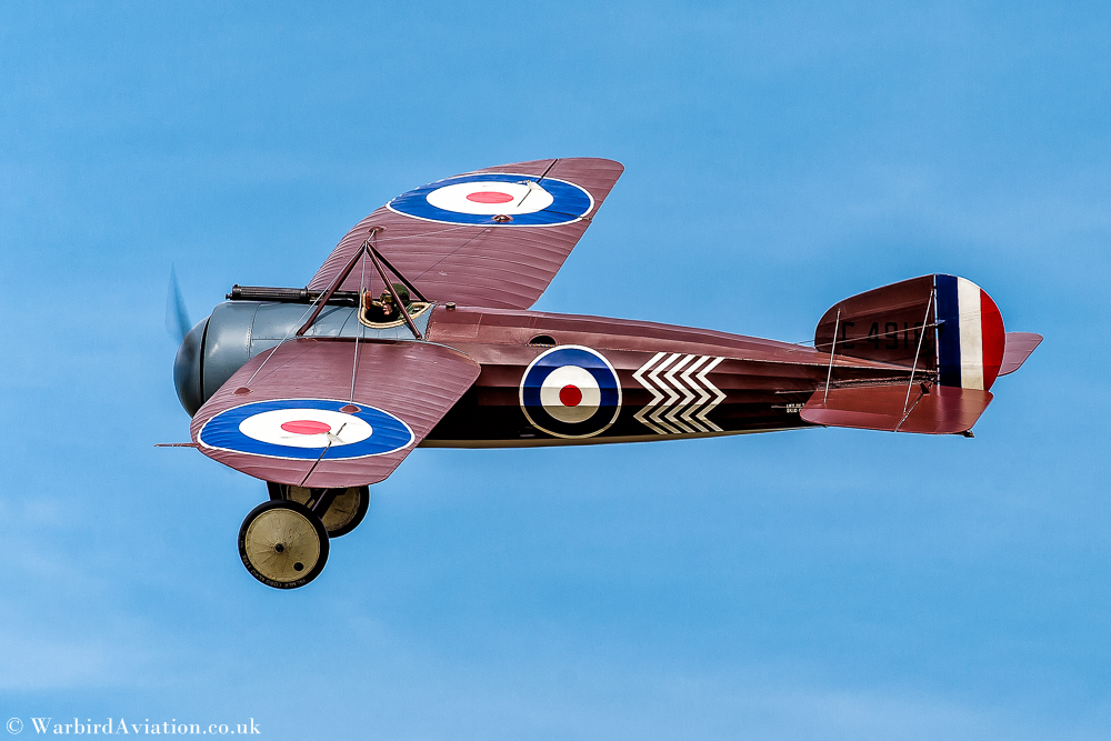 Continuing the WWI theme was a solo demonstration by John Munn in the collections Royal Aircraft Factory SE5a F904. The collection’s example was built in 1918 and saw action in Belgium with 84 Squadron, shooting down a Fokker DVII on the last day before the armistice. This was followed by what was meant to be a dogfight demonstration by the visiting Nieuport 17 owned by the WW1 AHT and the Fokker Dr1 Triplane 152/17 in the colours of famous German fighter ace Manfred von Richthofen, the Red Baron. Whilst John Gilbert in the Nieuport 17 flew some very photogenic low passes, the Fokker Dr1 Triplane remained very high and never really engaged with the Nieuport 17.