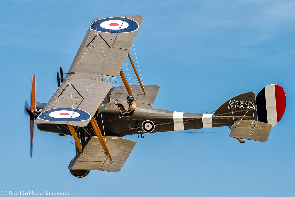 Moving back a generation we had the first performance of the day from the WWI twin seaters, the Avro 504K, Bristol F2B Fighter and RAF BE2. The Avro 504K E3273 was one of the first successful British night fighters and the Shuttleworth Collection’s example is in Night Fighter Home Defense marking and was used from the start of WWI until the early 1930’s.